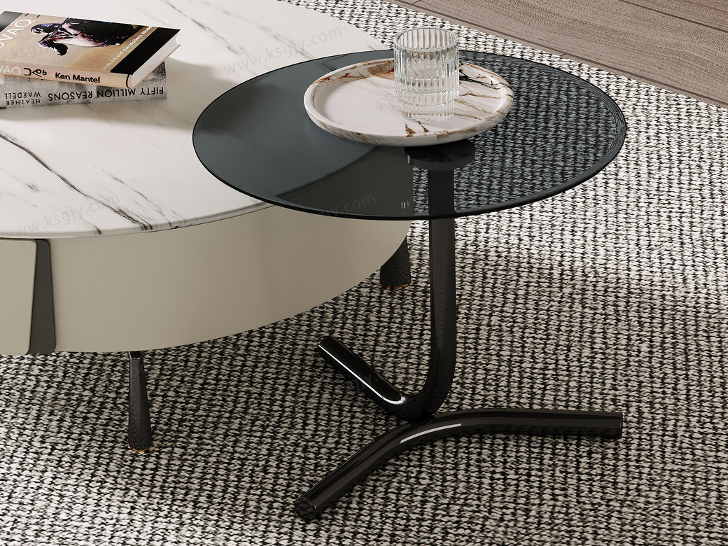 歌迪 极简风格 钢化灰玻+五金脚 角几