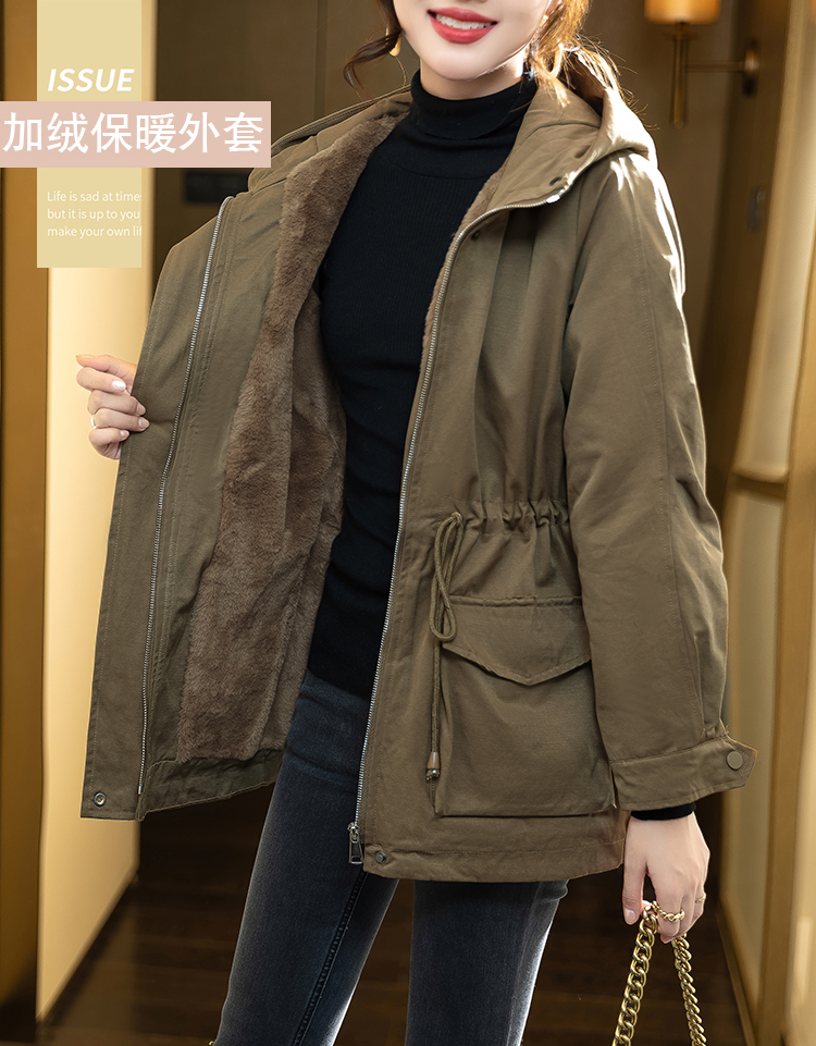 棉服女大码加绒加厚外套2023冬装新款派克服棉衣宽松胖mm女装棉袄