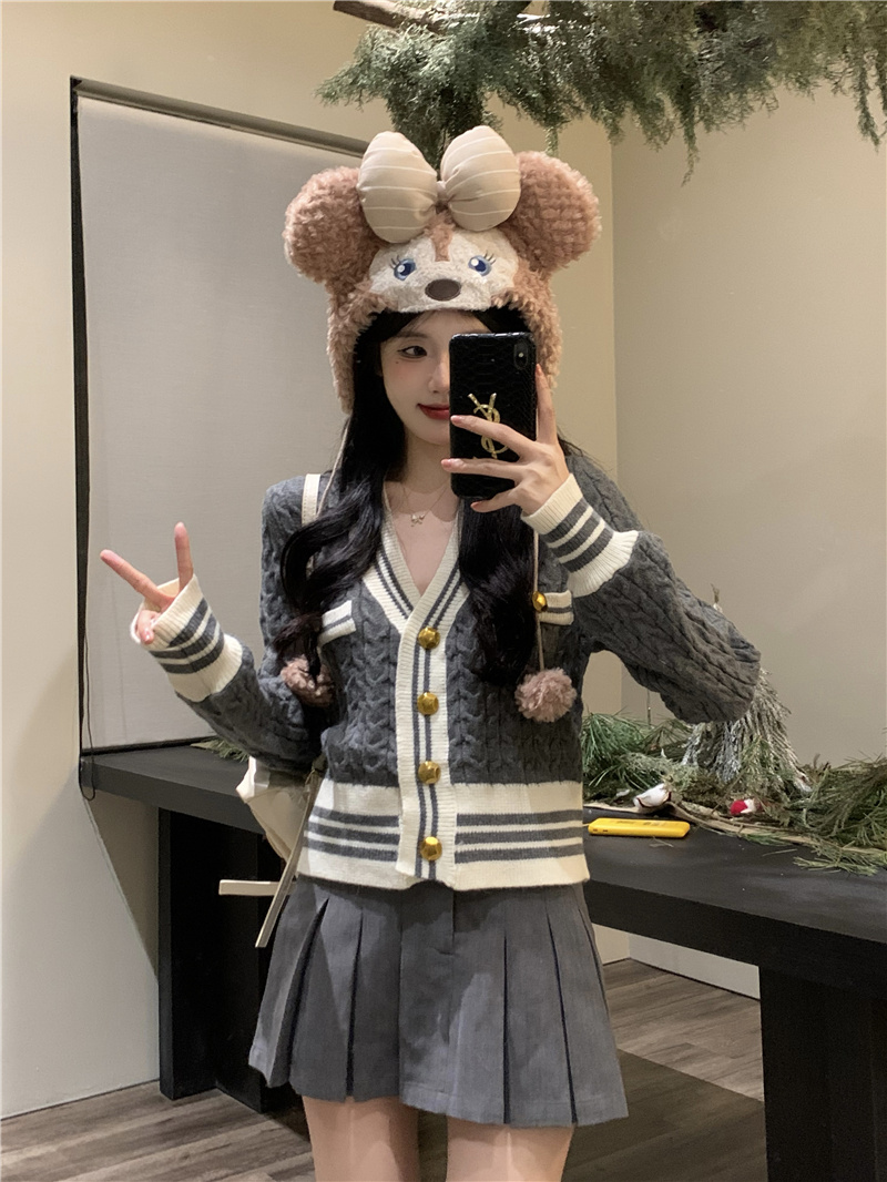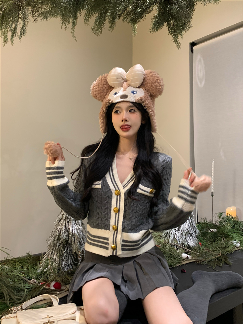 秋冬甜美减龄可爱立体宽松娃娃领设计感慵懒风针织套头毛衣女长袖
