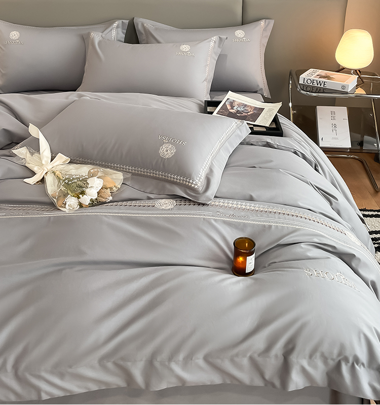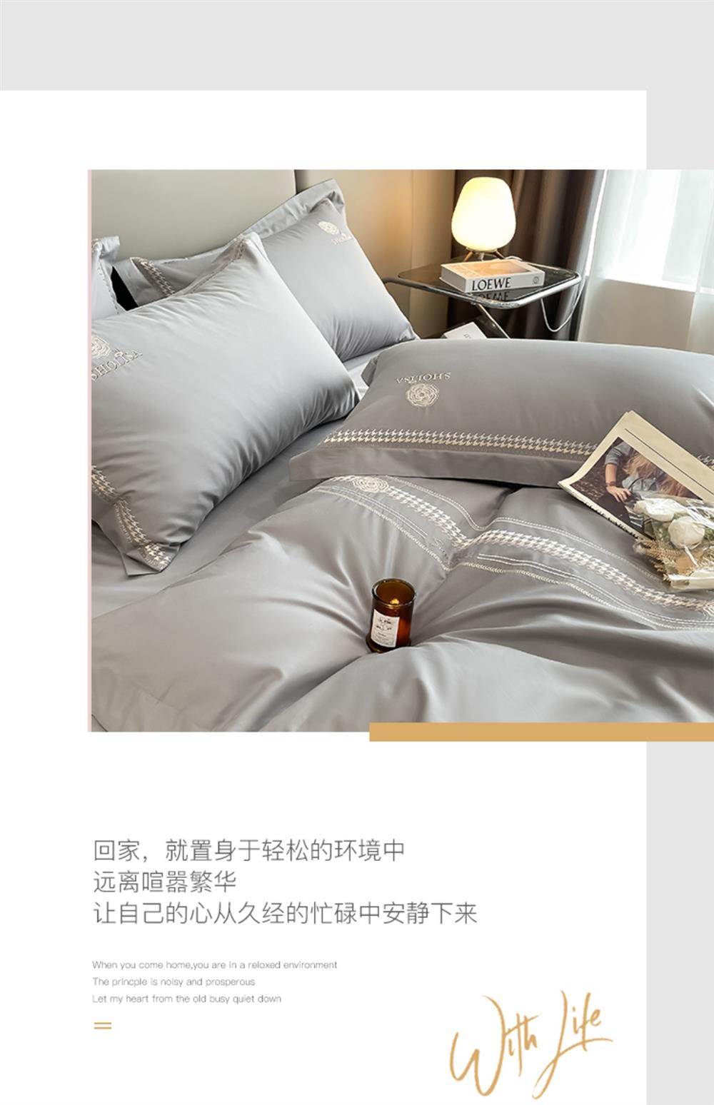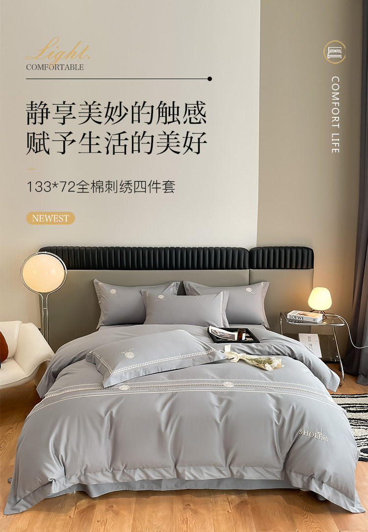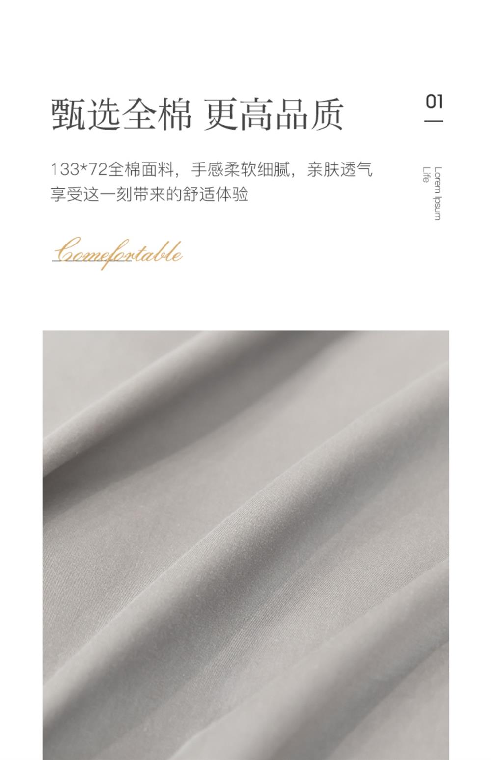 富安娜轻奢160支纯棉四件套全棉简约高级感四季柔软被套床上用品4
