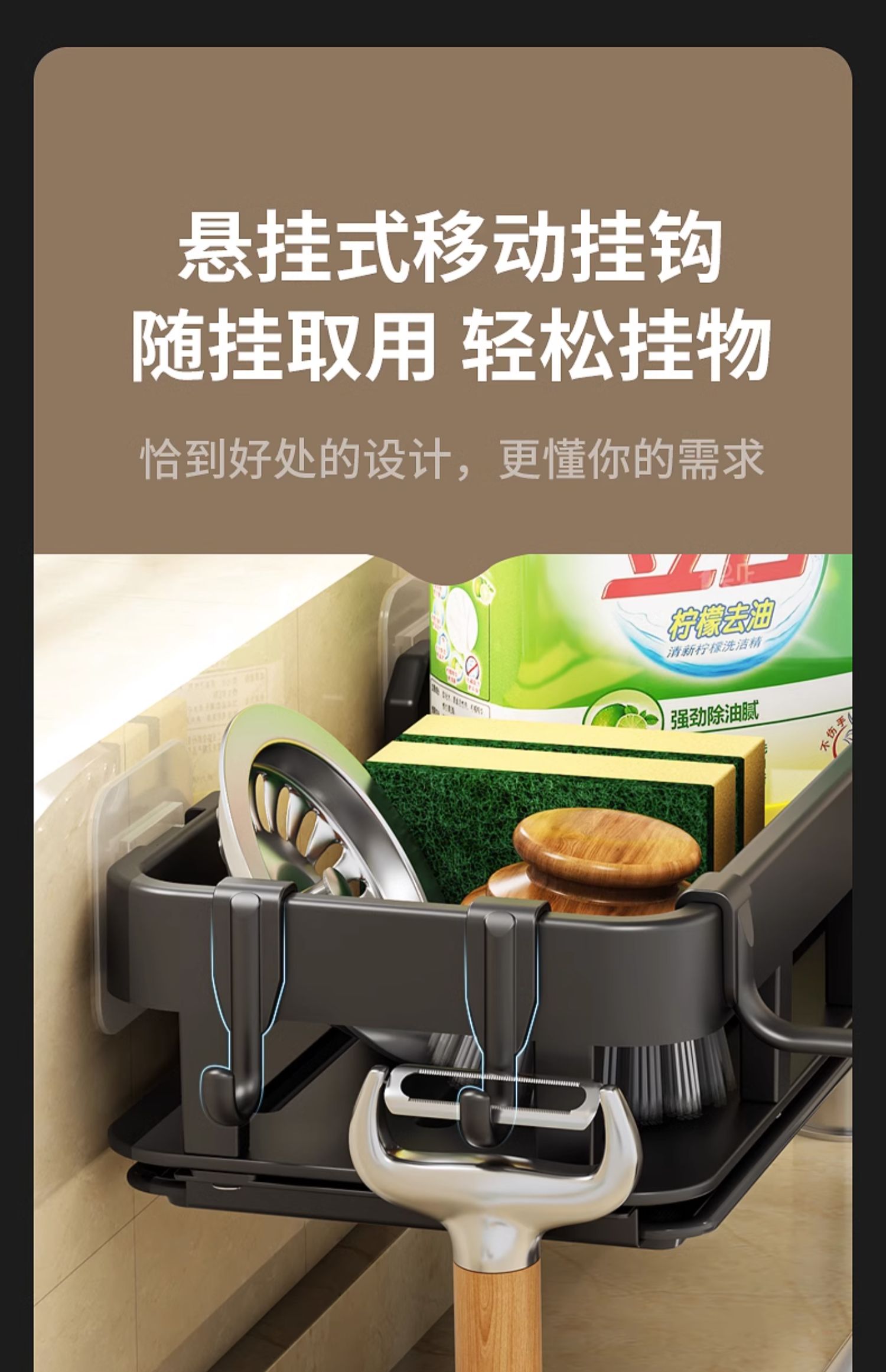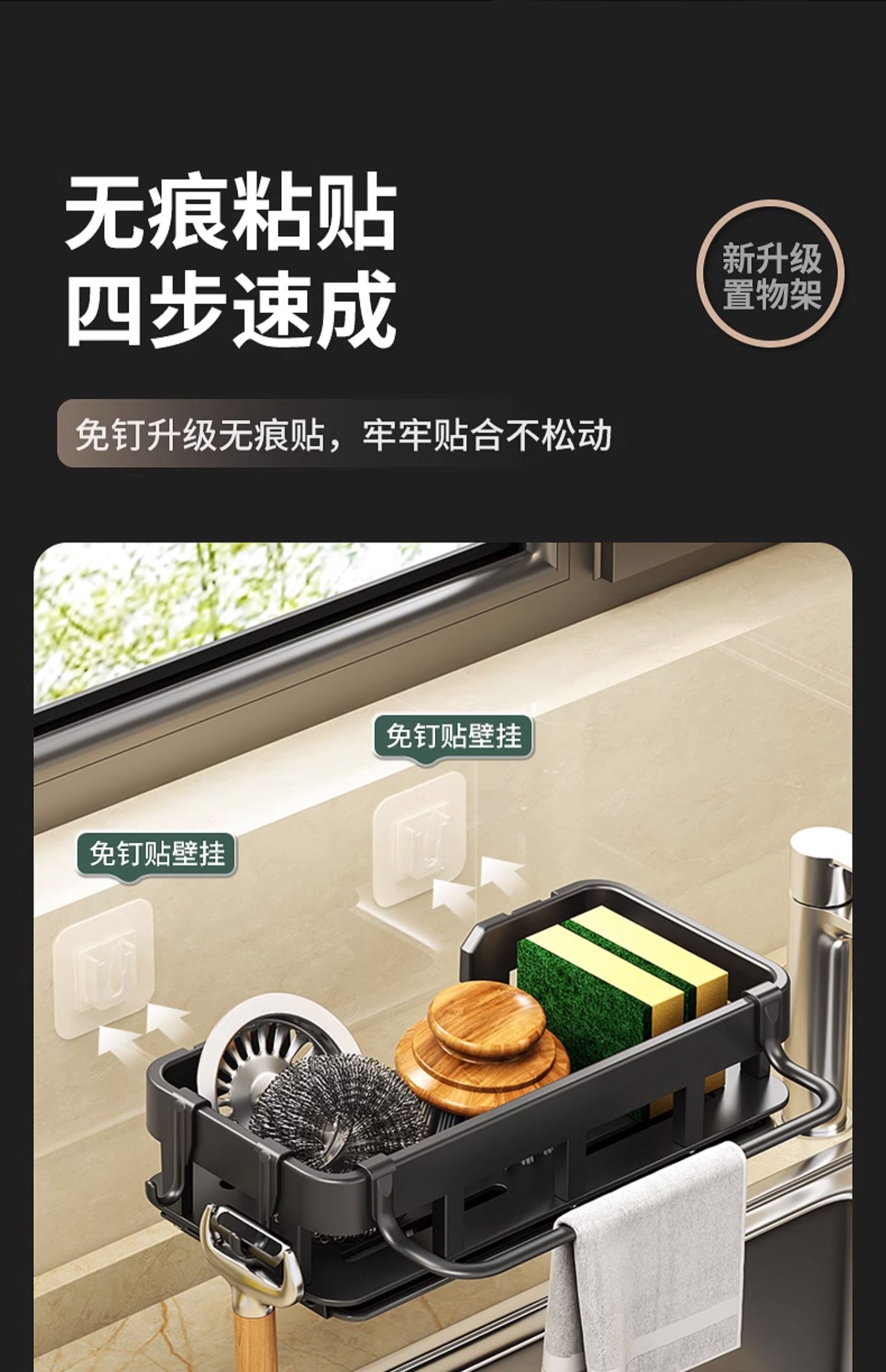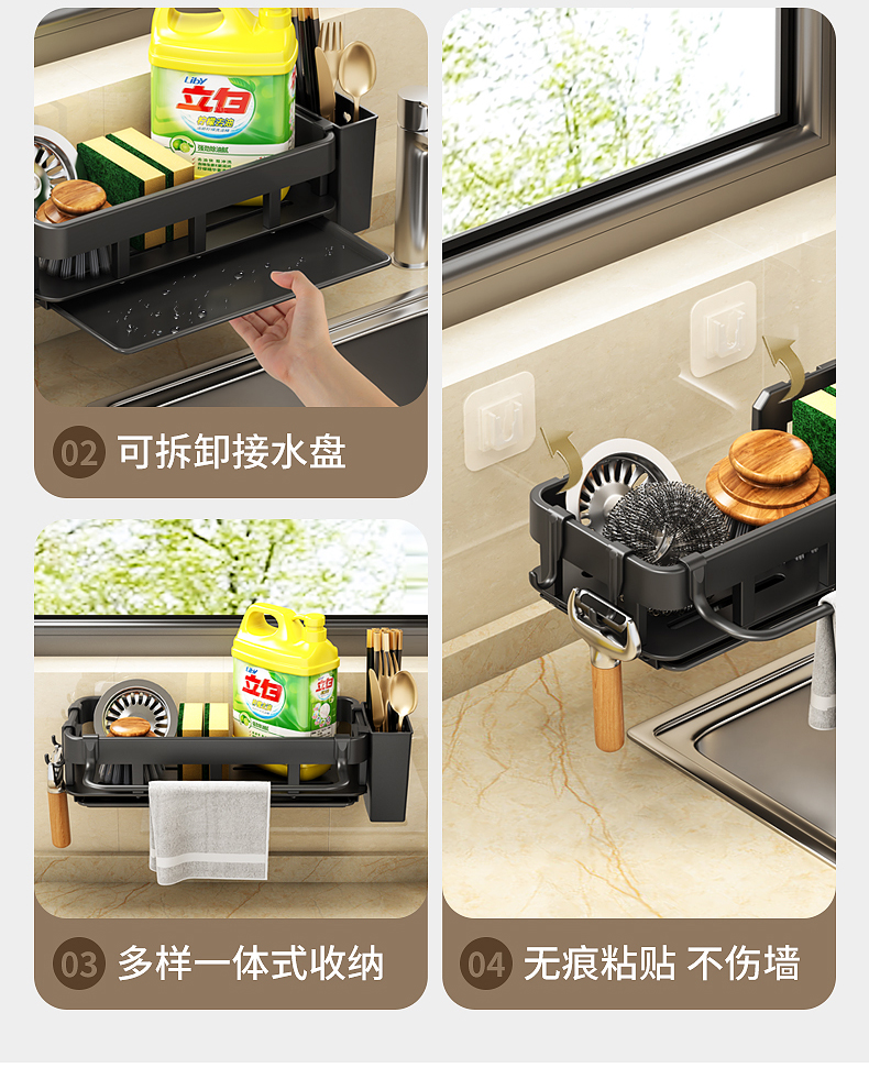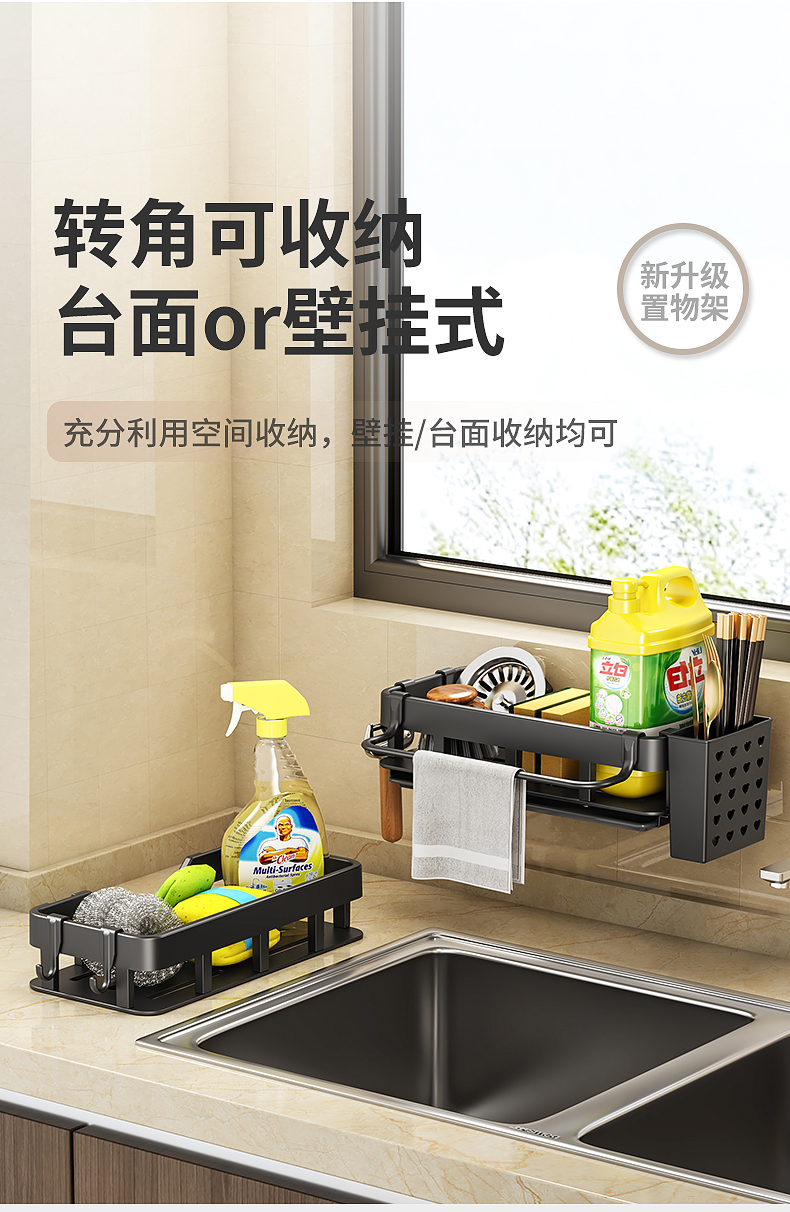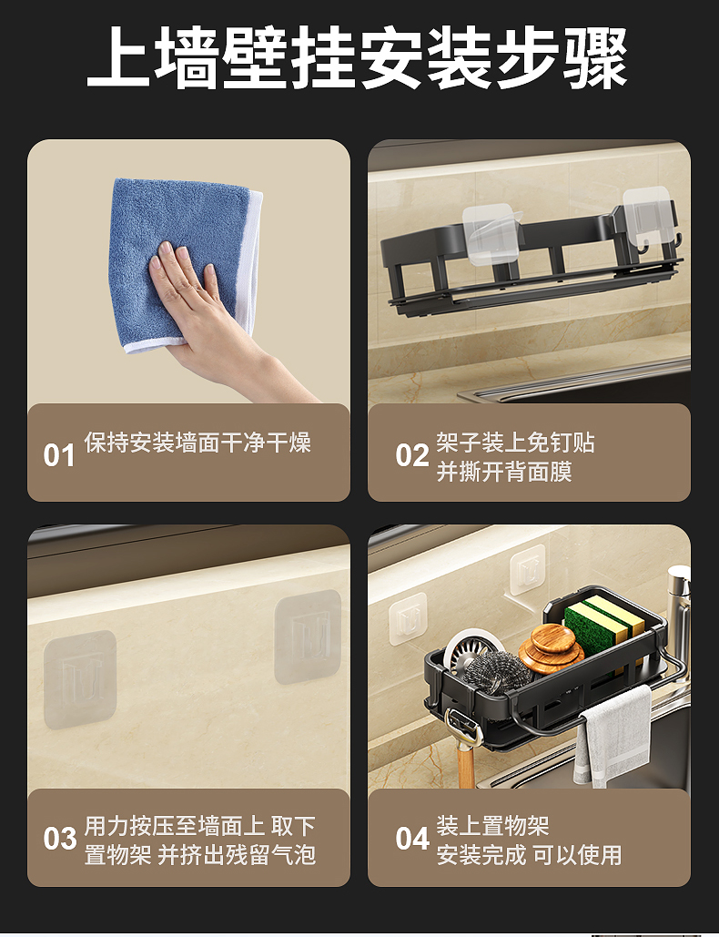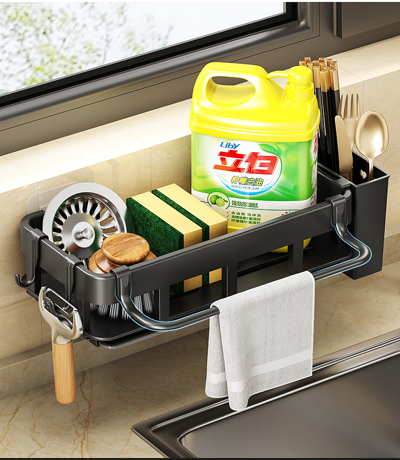 免打孔厨房挂钩架壁挂式抹布沥水架多功能锅铲勺子用品大全收纳架