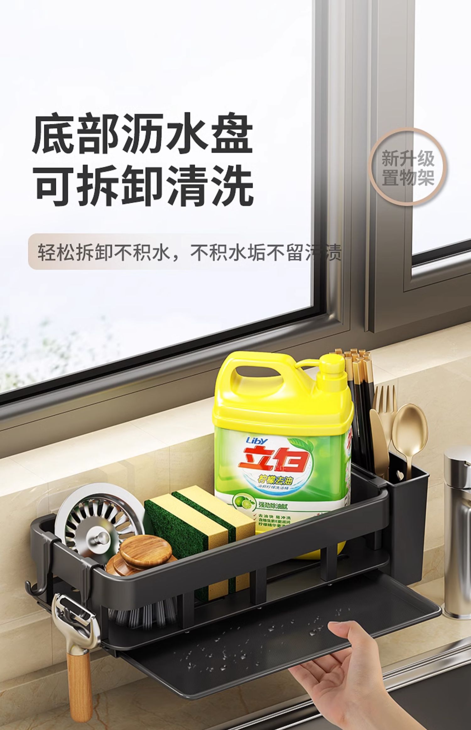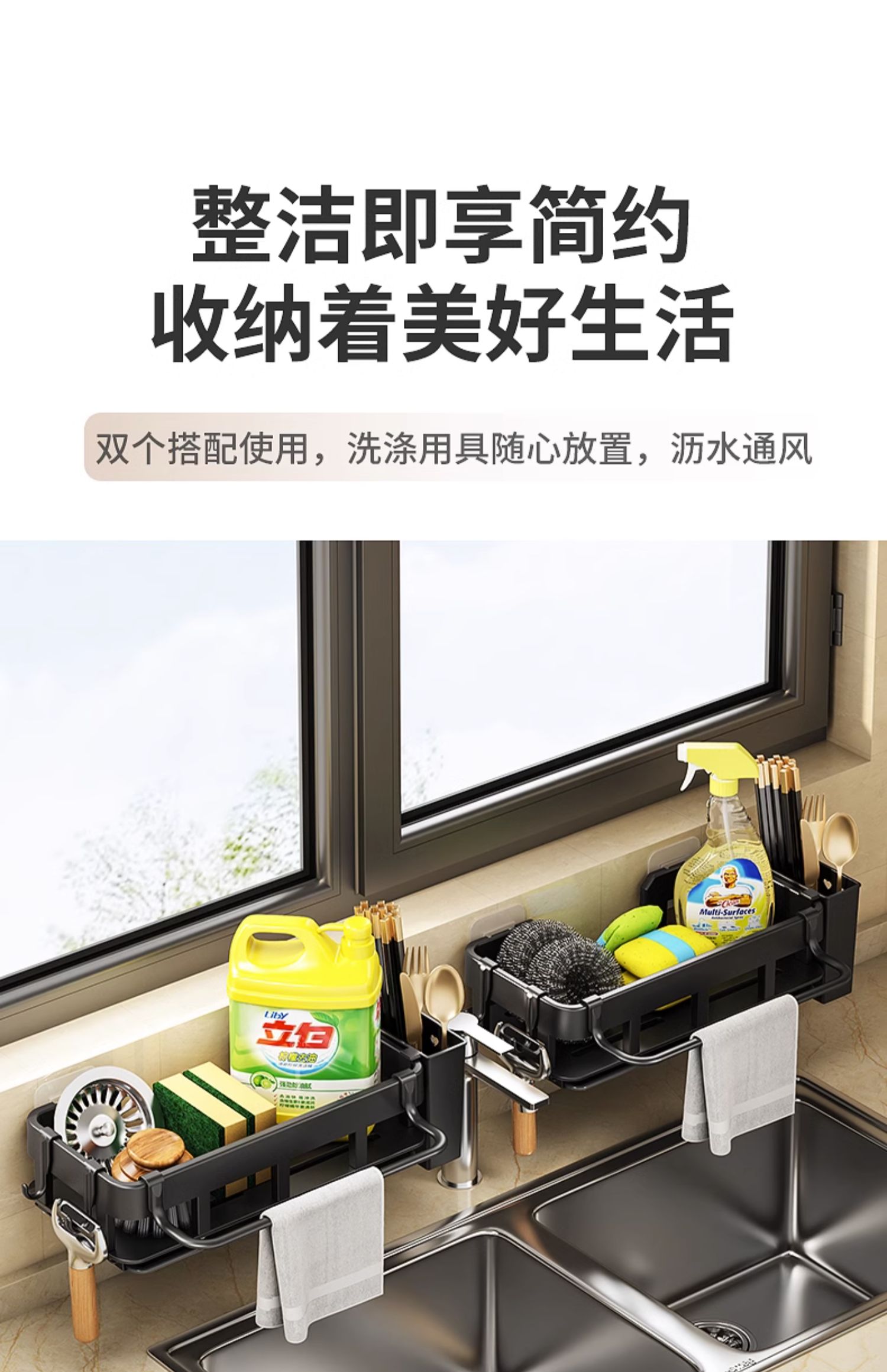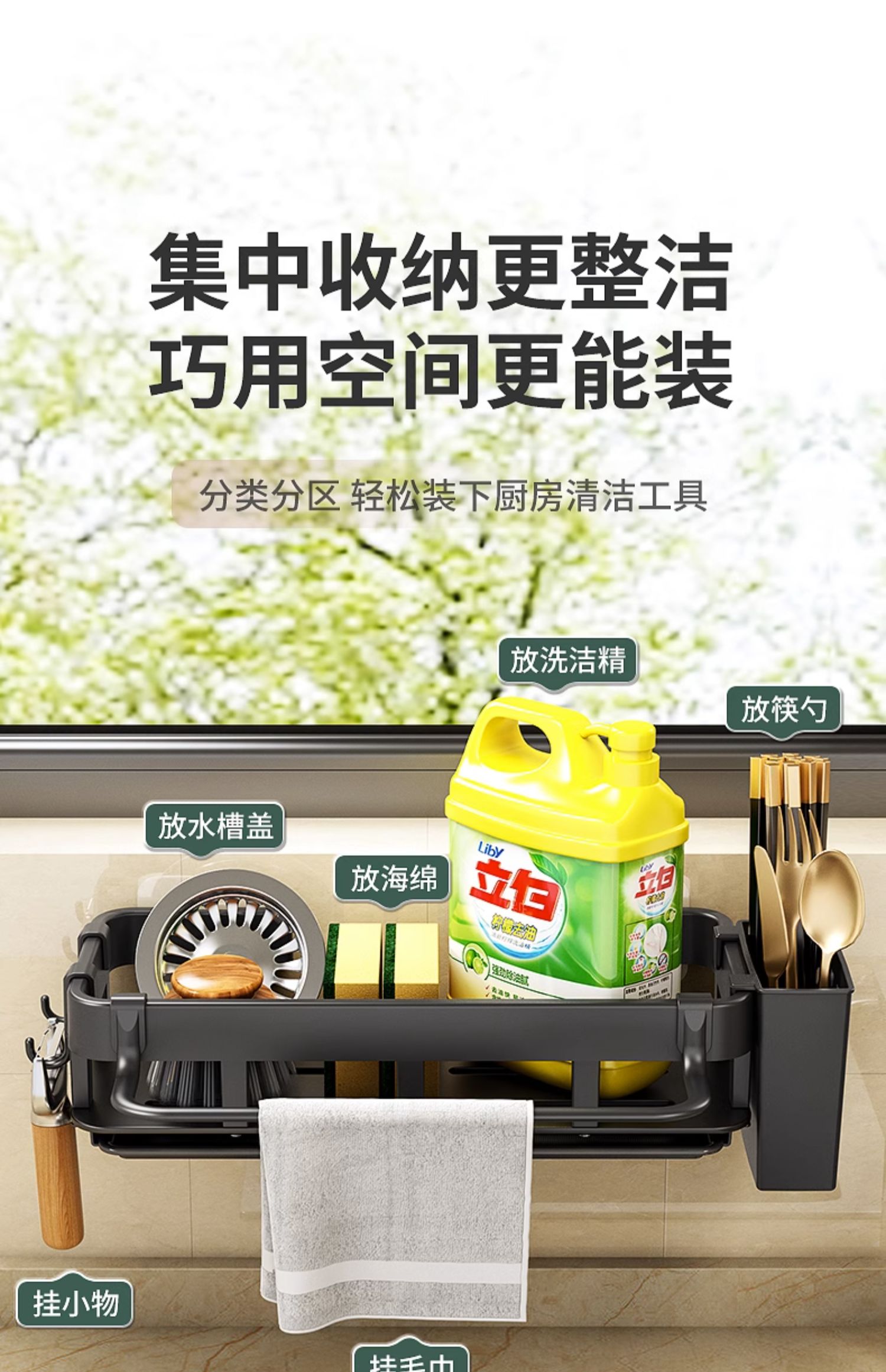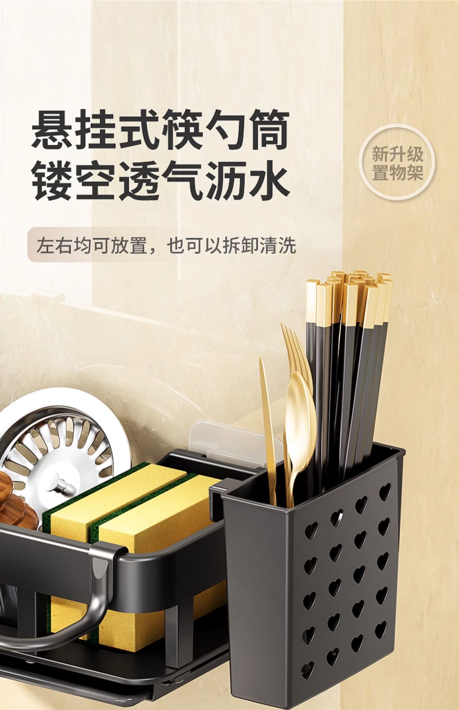 免打孔厨房挂钩架壁挂式抹布沥水架多功能锅铲勺子用品大全收纳架