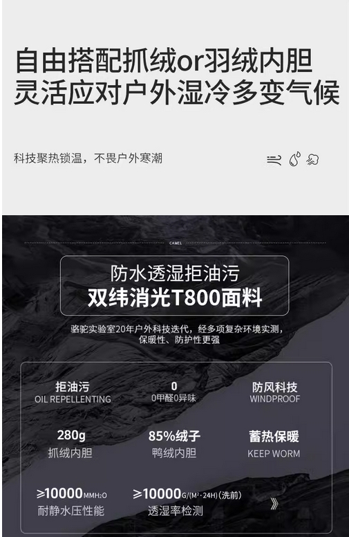 【五合一】骆驼女装羽绒服冲锋衣外套冬户外防水防风羽绒内胆外套