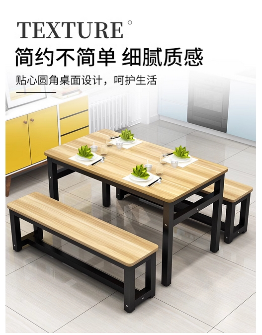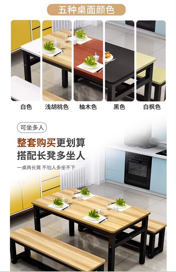 小吃店家用餐桌椅早餐吃饭桌长方形快餐饭店餐桌组合食堂商用桌子