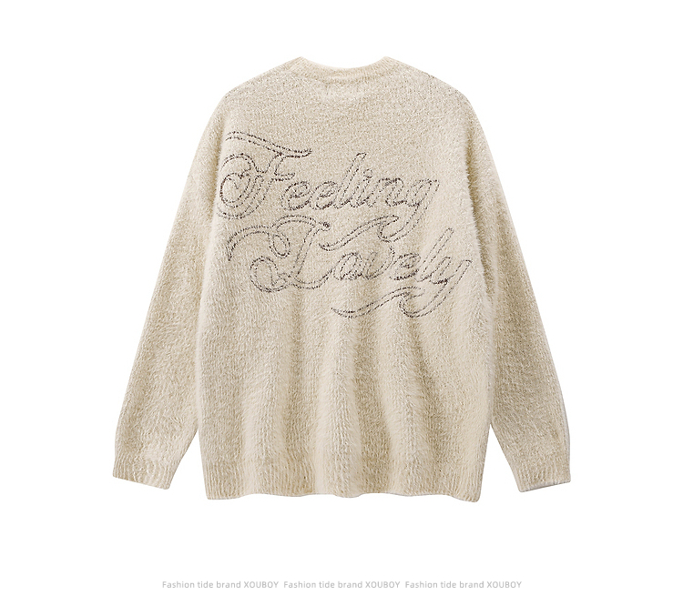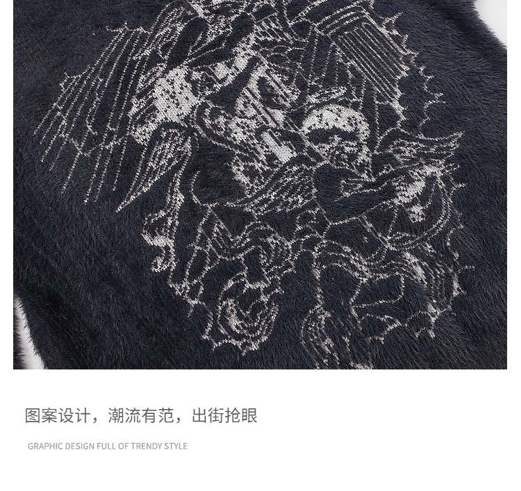 国潮美式hiphop创意植绒情侣毛衣男秋冬设计感慵懒风红色针织线衫