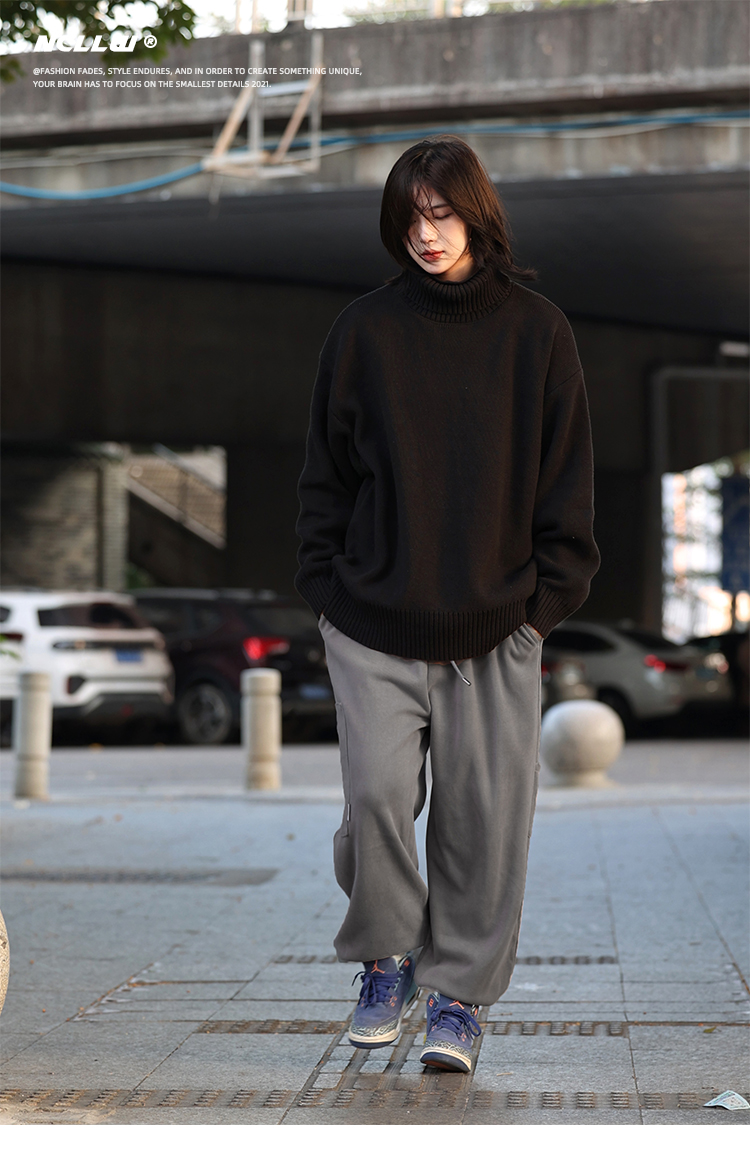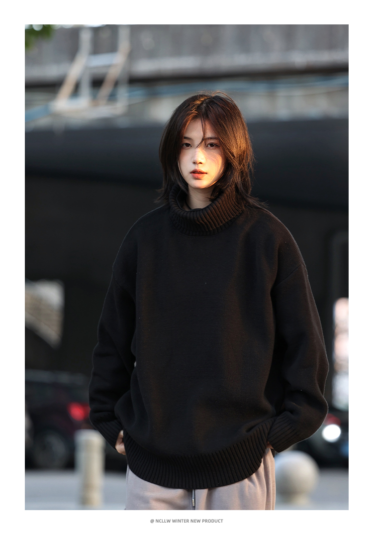 圆领毛衣男秋冬季纯色百搭针织打底衫男生潮流内搭加厚保暖线衣服