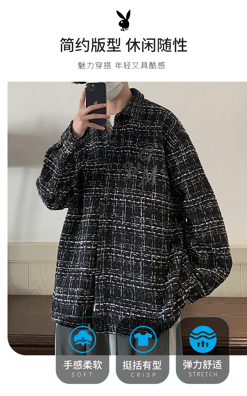 秋季男士磨毛衬衣宽松休闲上衣男款纯棉衬衫长袖痞帅男装潮流外套