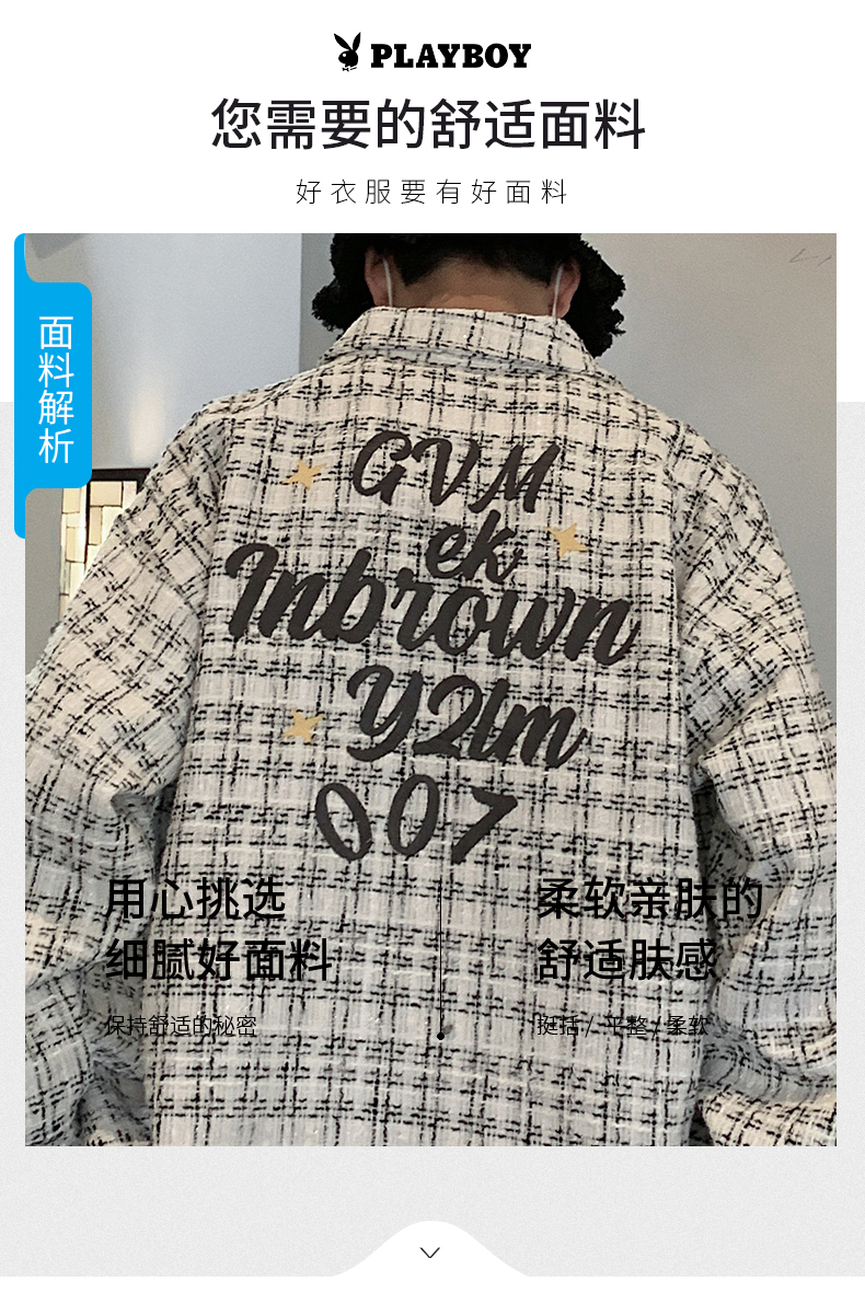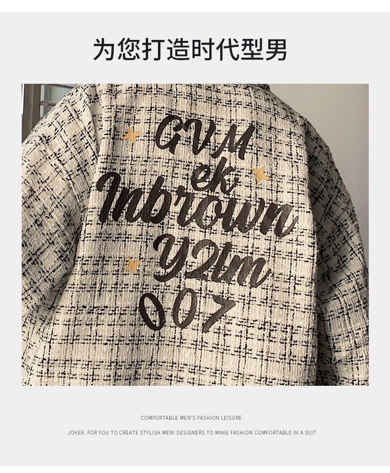 长袖衬衫男卡其色字母印花100%纯棉青少年学生衬衣服秋季个性外套